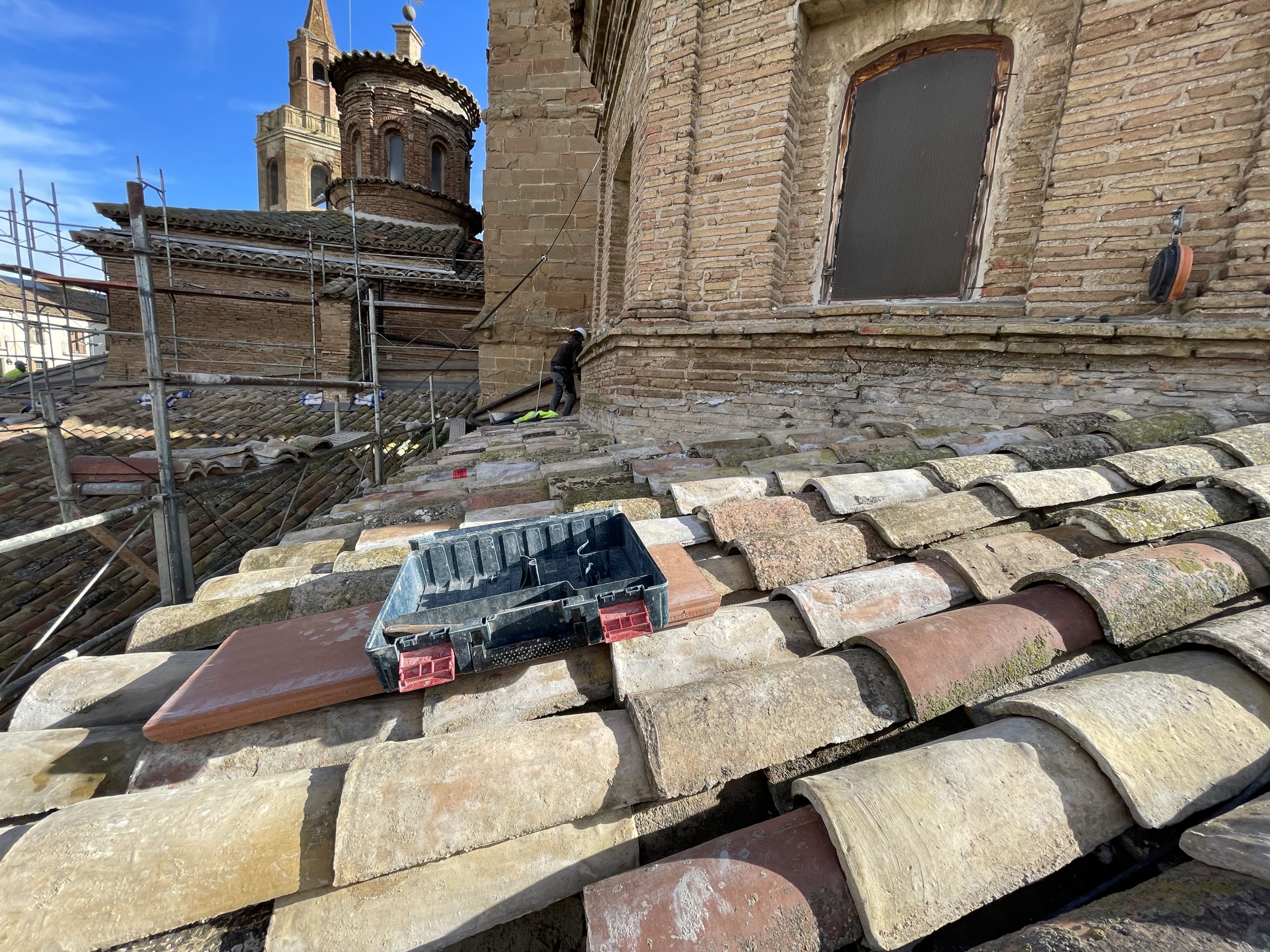 Estamos de obra en la Catedral de Barbastro. La Diputación General de Aragón promueve las obras de reparación de las cubiertas y de la torre de la Catedral.