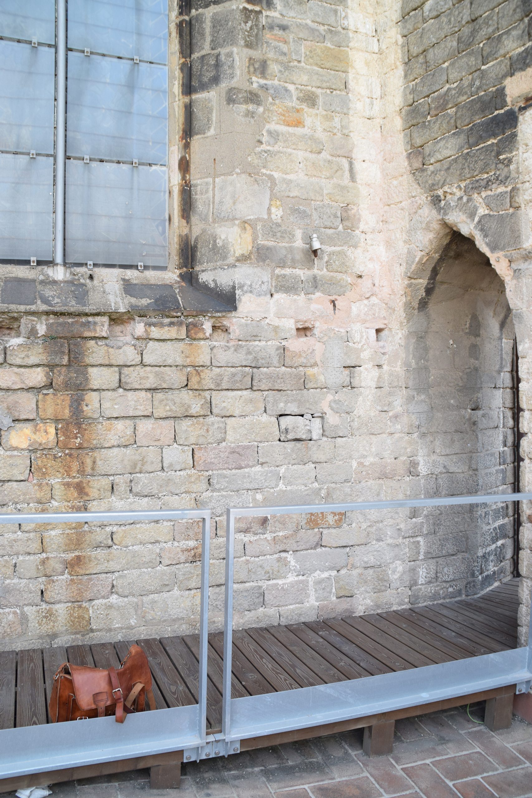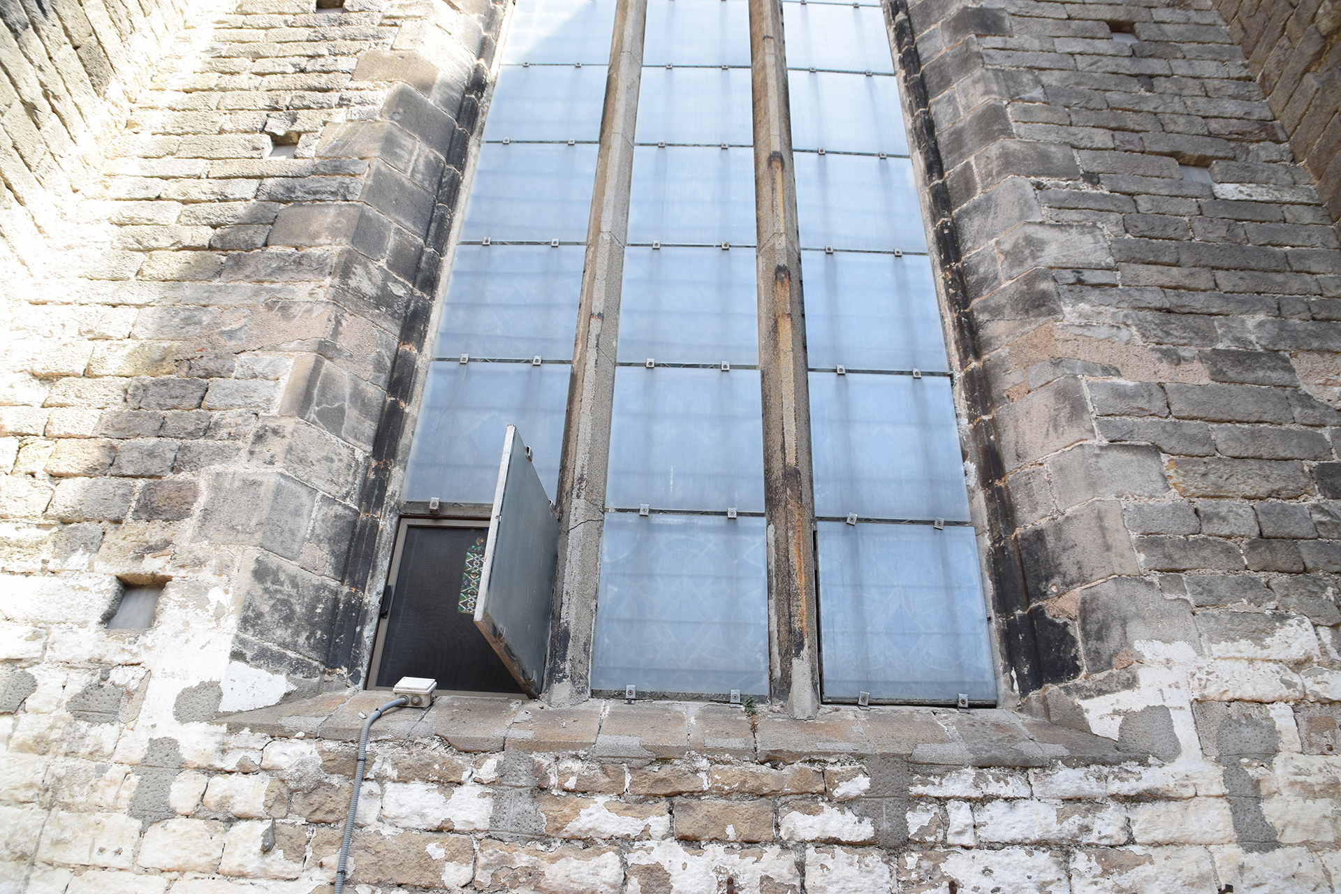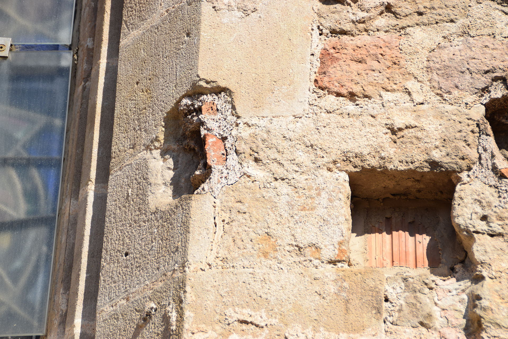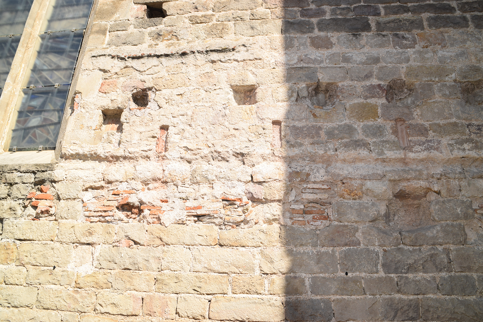 La restauración de la fachada Noroeste ha contemplado el derribo de una parte del edificio que se encontraba adosado al ábside en un estado de avanzado deterioro.