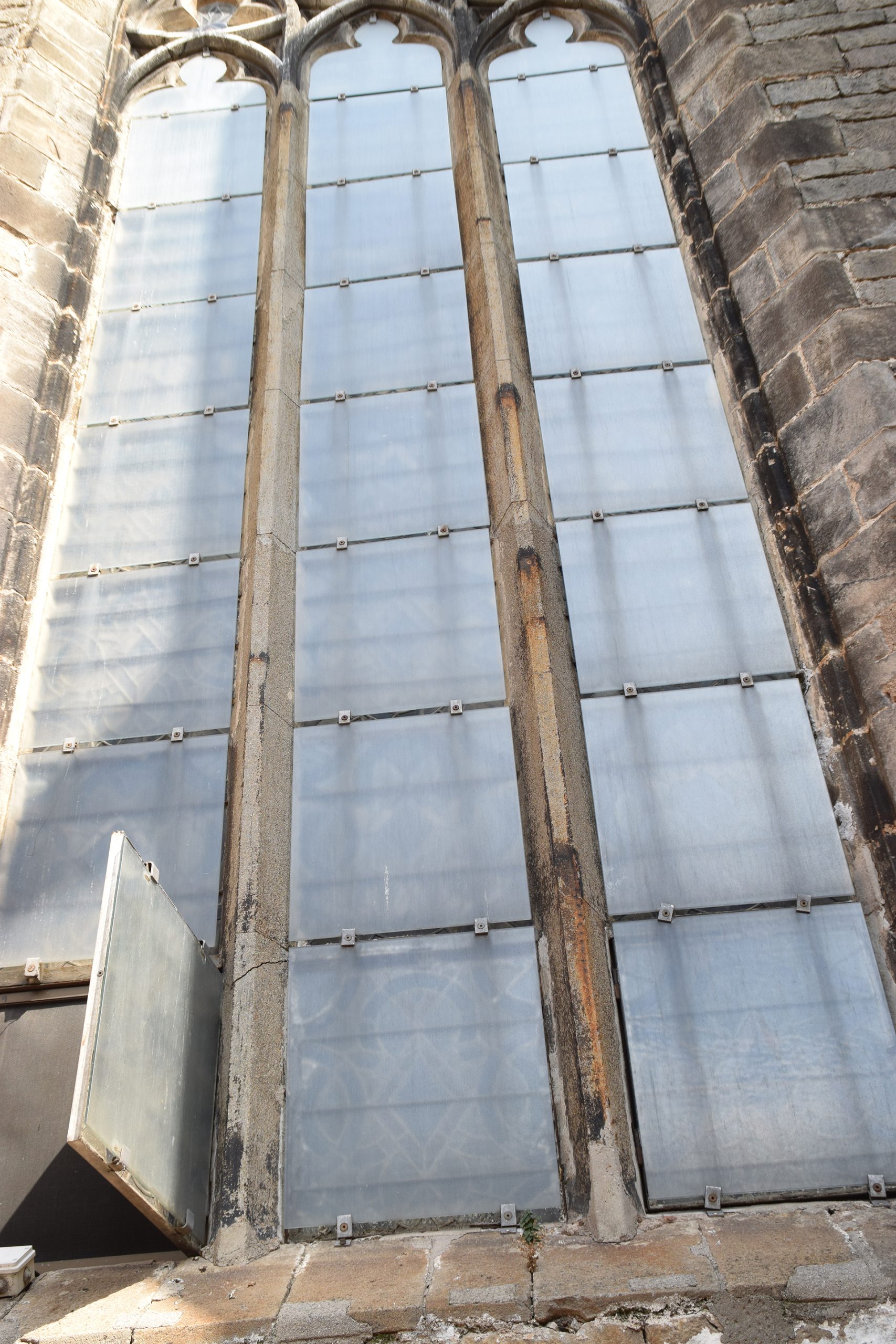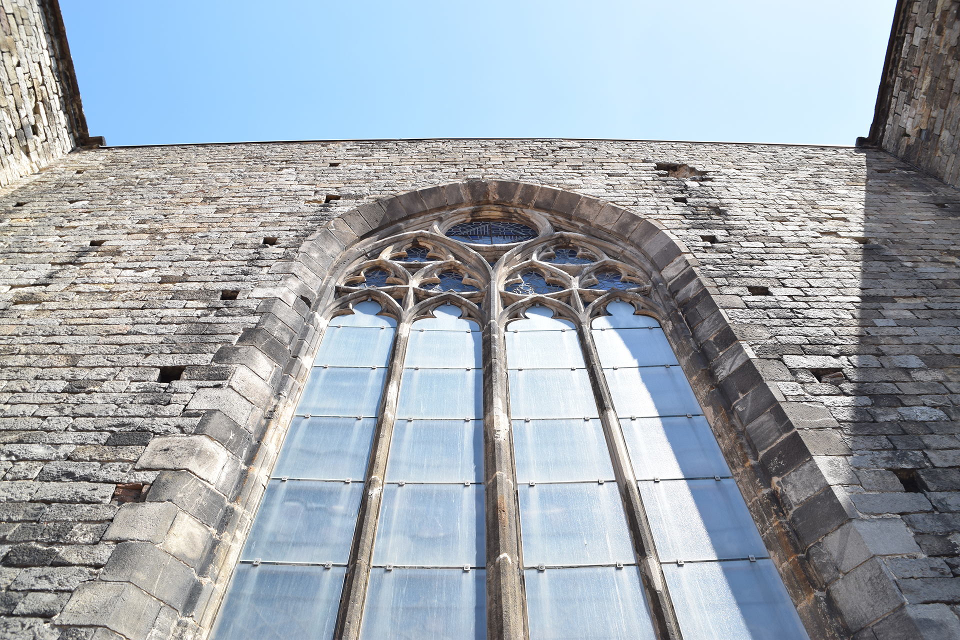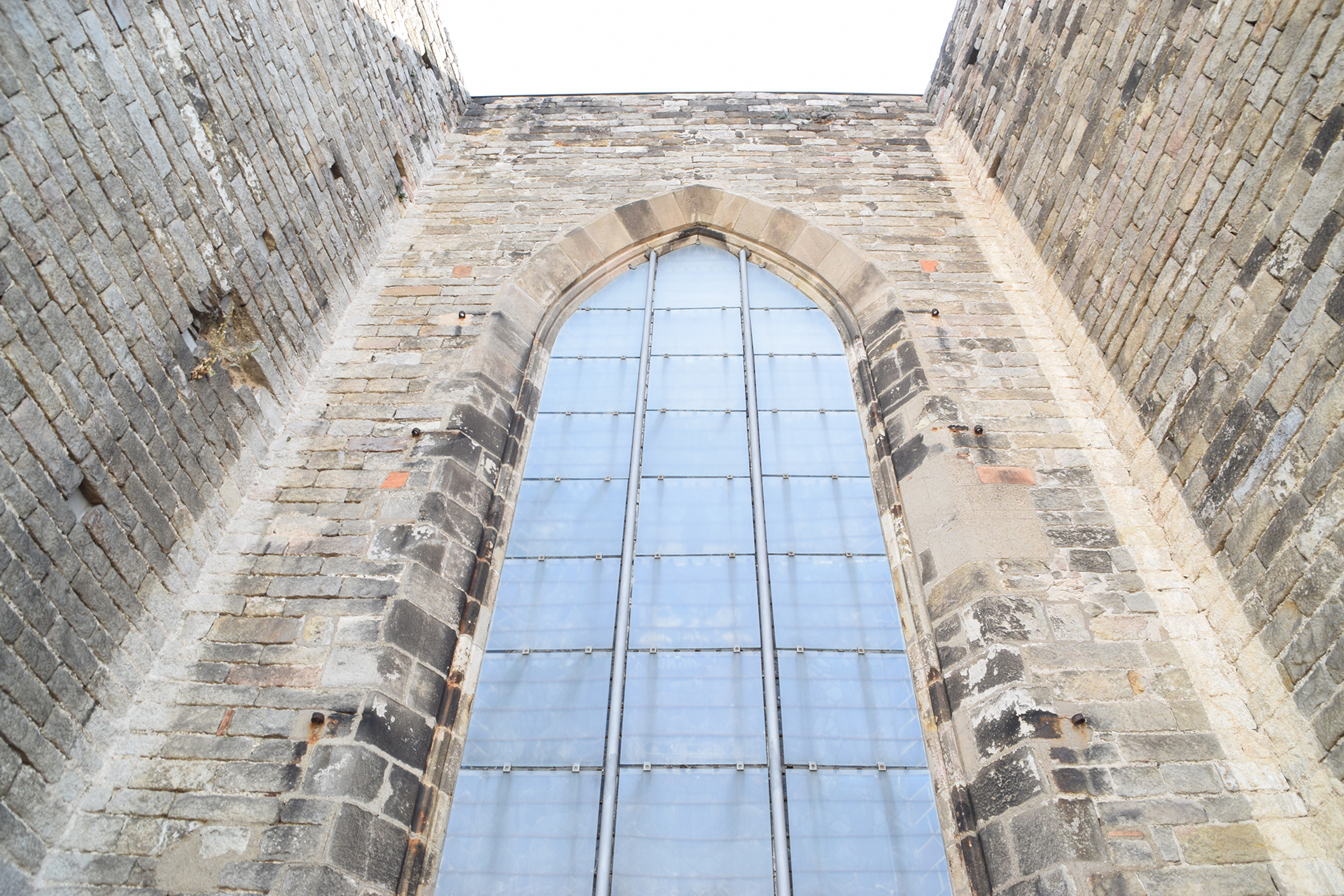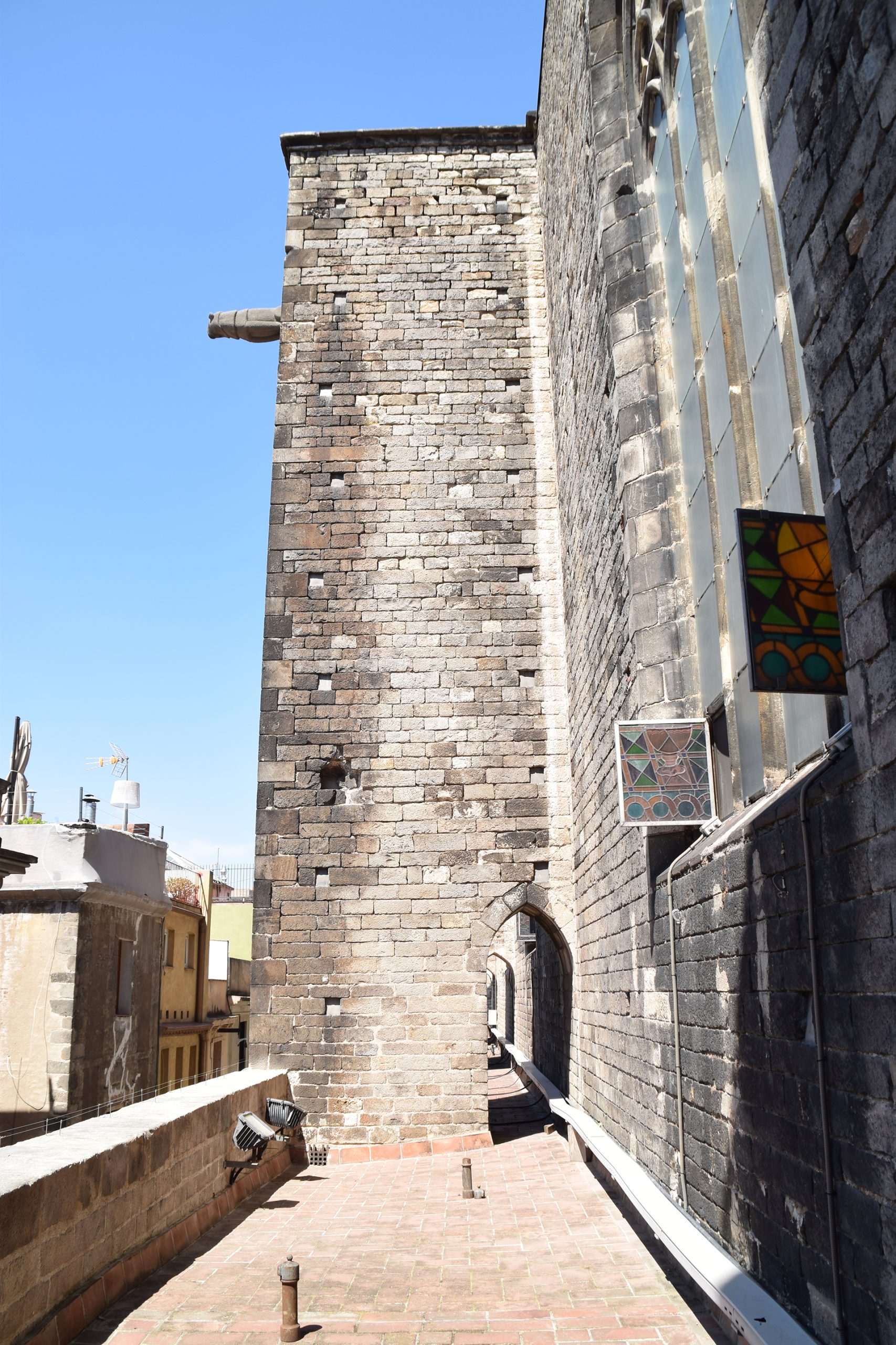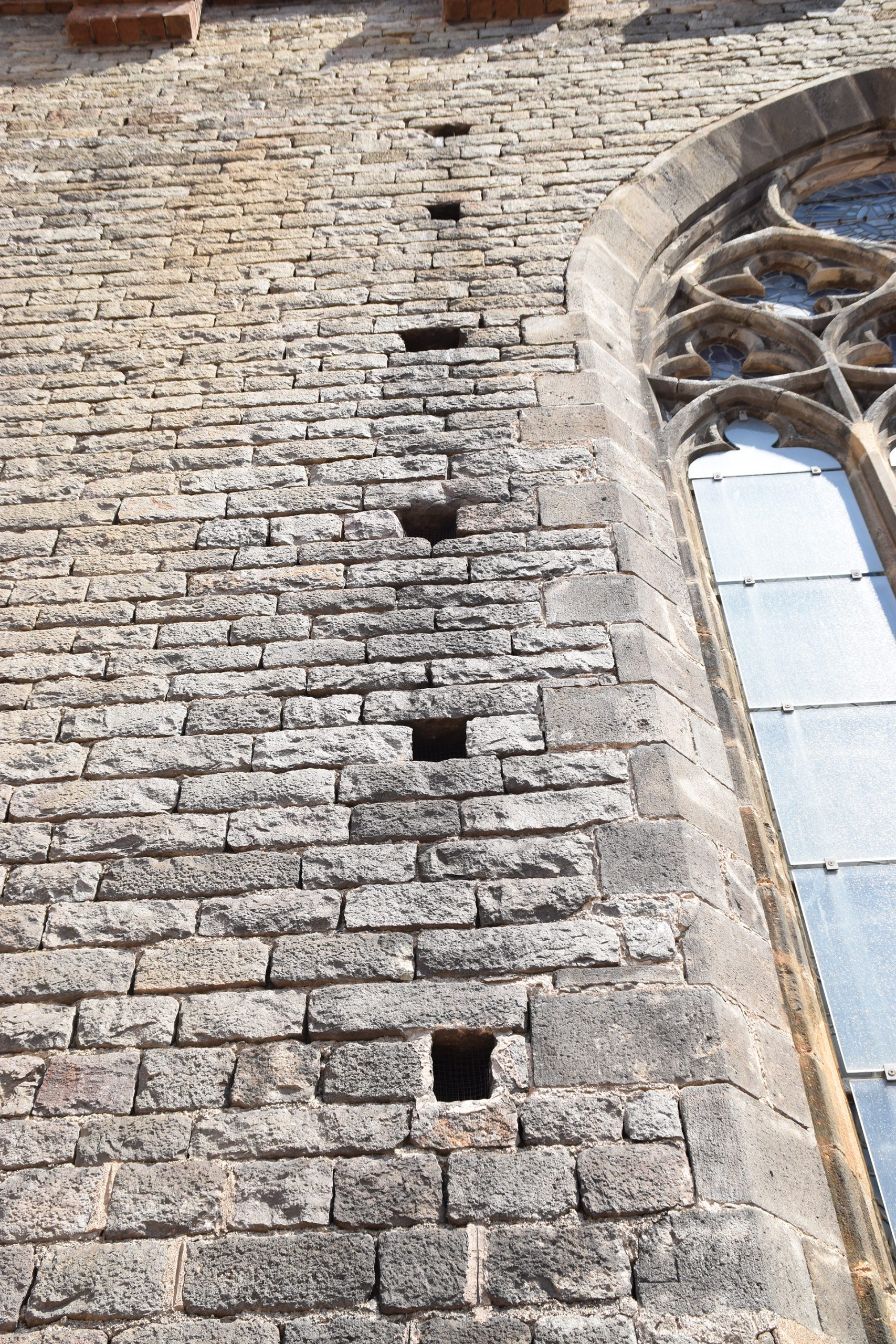La restauración de la fachada Noroeste ha contemplado el derribo de una parte del edificio que se encontraba adosado al ábside en un estado de avanzado deterioro.