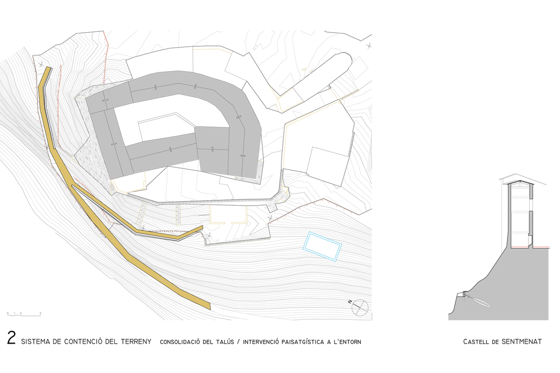 Después de un largo periodo de abandono, el estado general del Castillo se acercaba a la ruina. El proyecto, desarrollado por fases, ha tratado de revertir los procesos de degradación para garantizar la conservación del monumento. Como paso previo, se han realizado las obras de consolidación del terreno mediante una pantalla de pilotes unidos por una jácena de coronamiento y anclajes metálicos. Para recuperar los volúmenes originales del edificio y sus valores arquitectónicos, se ha realizado la restauración de las estructuras murarias y las bóvedas de mampostería, así como la sustitución de las estructuras horizontales y de la cubierta adaptándolas a los nuevos requerimientos normativos. Por tanto, se ha conseguido revalorar los elementos que confieren el carácter propio del castillo.